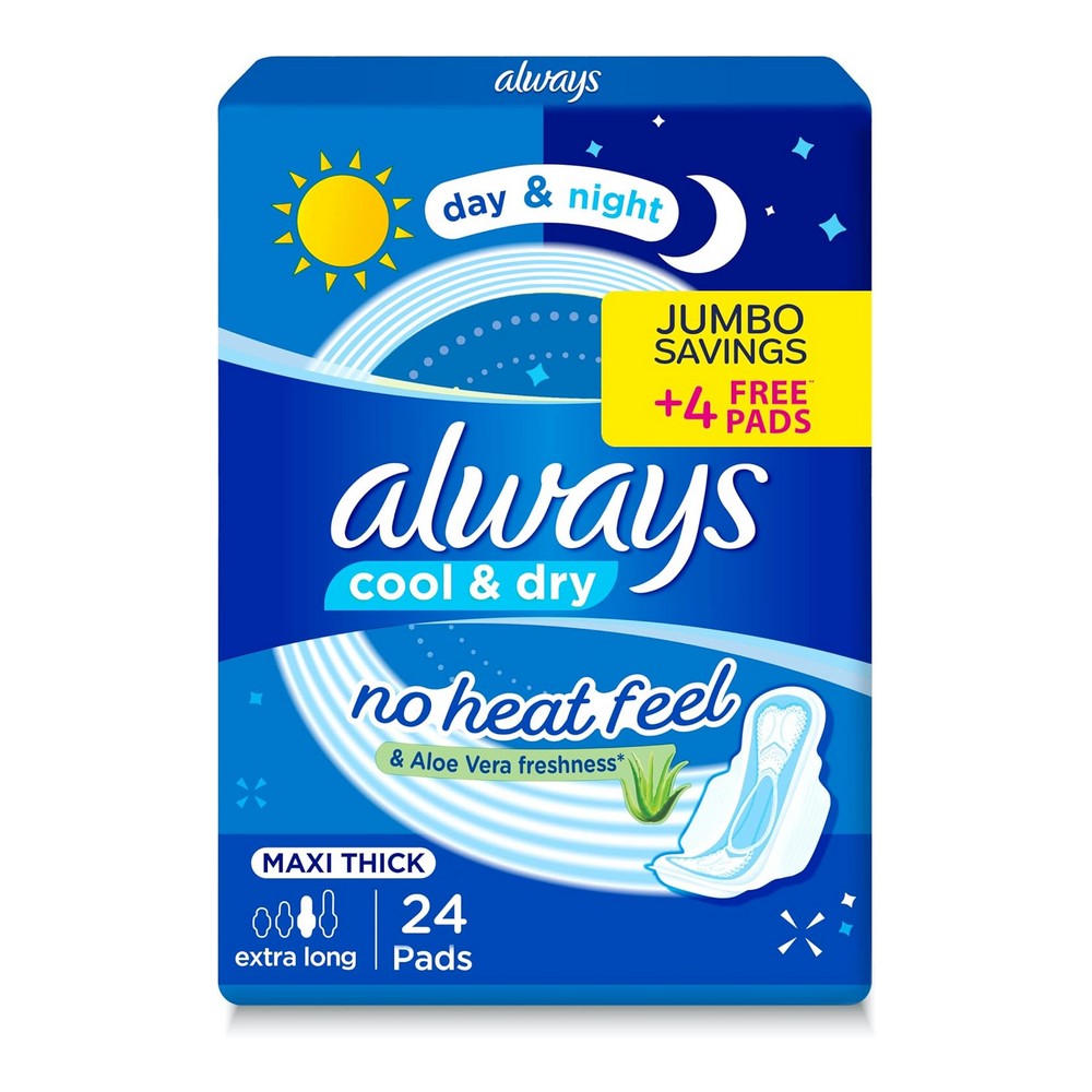 اولويز ماكسى سميكة بروتيكت بلس طويل جدا 24 فوطة +4 فوطة مجانا كول اند دراى || تخلصي من الشعور بالحرارة طوال اليوم مع فوط اولويز الصحية ماكسي السميكة. مصنوعه بتقنية كول اند دراي توب شيت لامتصاص الرطوبة ومنع الشعور بالحرارة. تمنحك خلاصة الالوفيرا انتعاشاً مستمراً، بالإضافة إلى الراحة والحماية التامة. اخترى اولويز لأفضل تجربة راحة وأمان، دون أي شعور بالحرارة, مثالية لفترة الحيض أو بعد الولادة, تضمن لك الثقة والراحة في كل لحظة.