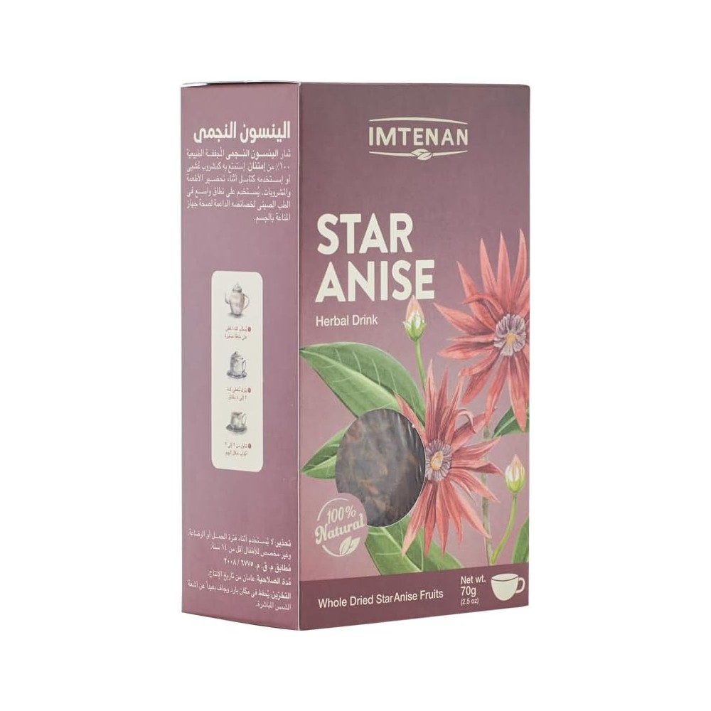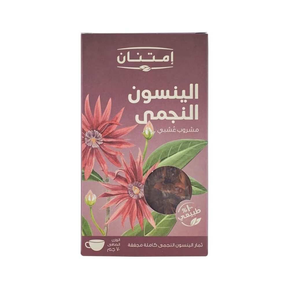 امتنان ينسون نجمي منتج طبيعي يتميز برائحته العطرية المميزة ونكهته الغنية، حيث يُستخدم في تحضير المشروبات الدافئة والوصفات الغذائية المختلفة، كما يعد خيارًا مناسبًا لمن يبحثون عن الأعشاب الطبيعية ضمن نمط حياة متوازن.