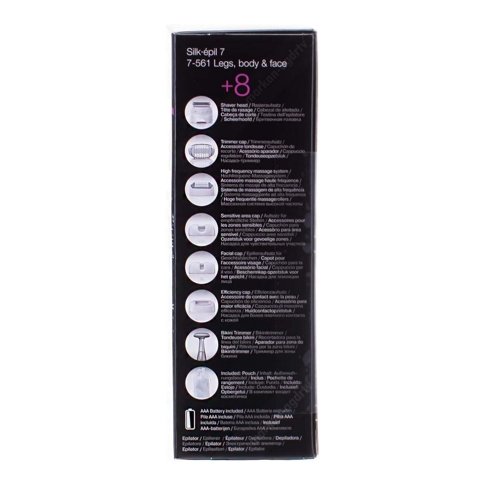 جهاز براون Epili 7-561 Wet / Dry Ras TR هو جهاز إزالة الشعر اللاسلكي للنساء، مثالي للاستخدامات الرطبة والجافة على حد سواء. يتميز بوظيفة الشحن السريع، حيث يتم شحن الجهاز في غضون ساعة ويكون جاهزًا للاستخدام لمدة تصل إلى 40 دقيقة. يأتي بمستويين للسرعة لتلبية احتياجاتك المختلفة. مع مجموعة من الملحقات المتنوعة مثل ماكينة تشذيب البكيني وملحق إزالة شعر الوجه وملحق الأجزاء الحساسة، يمكنك استخدام جهاز إزالة الشعر هذا لكافة مناطق جسمك. ميزات المنتج تشمل: العلامة التجارية: براون، حماية ضد الماء، وظائف متعددة، سهولة التحكم، قدرة على الشحن السريع، مرونة الاستخدام، القابلية للغسل، تصميم مدمج بحجم سفري، وزن خفيف فقط 0.5 كجم، الأبعاد: العرض 18 سم، الارتفاع 7 سم، الطول 19.6 سم.