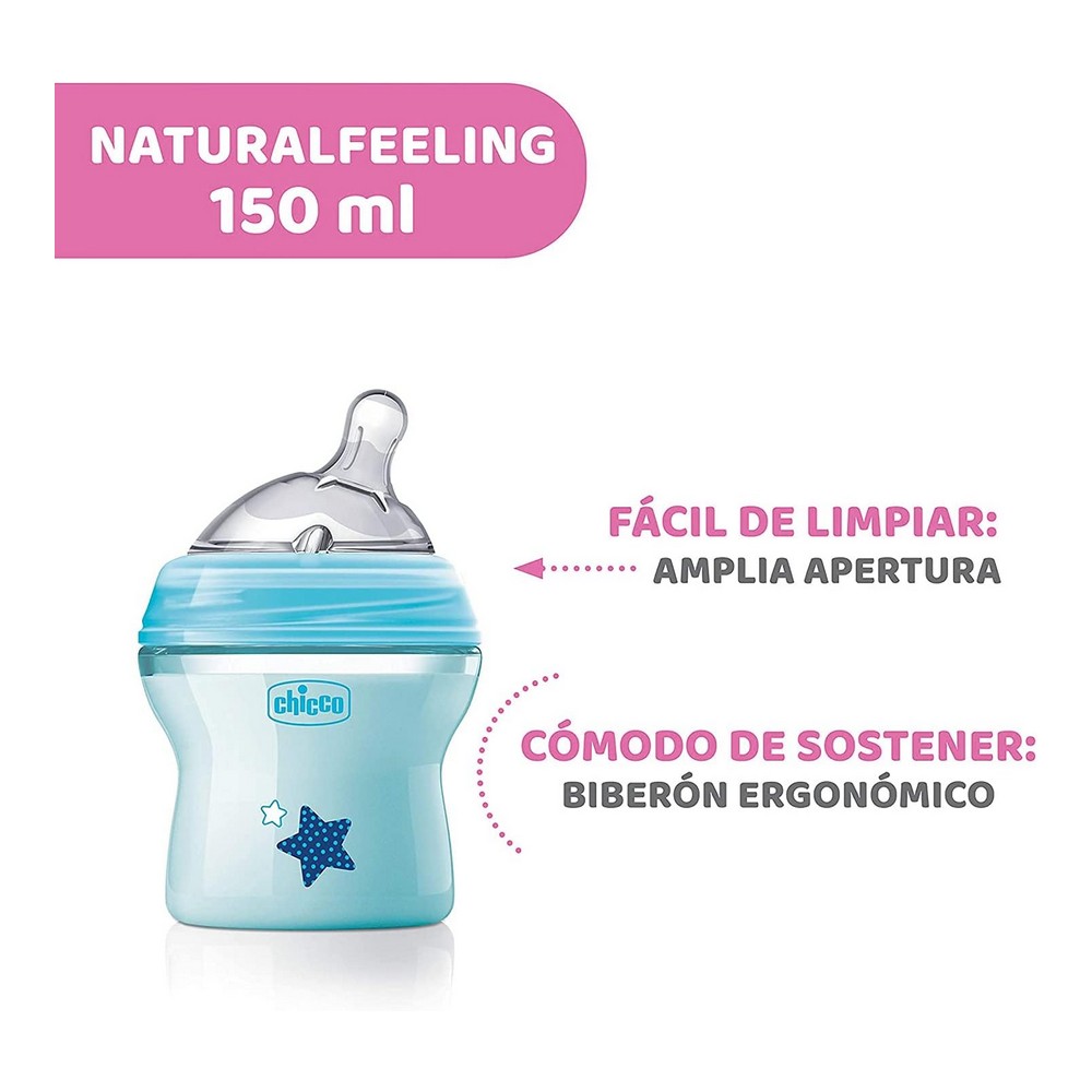 شيكو ببرونة ناتشورال فيدنج أزرق 150 مل || اكتشف القارورة المثالية لتغذية طفلك مع شيكو، المصممة خصيصاً لدعم نمو المواليد الجدد بشكل طبيعي. توفر الحلمة المائلة والدائرية تجربة رضاعة قريبة من ثدي الأم، مع غطاء مضاد للمغص يمنع دخول الهواء، مما يقلل من خطر المغص ويضمن راحة طفلك أثناء الرضاعة. السعة 150 مل تجعلها مثالية للاستخدام اليومي، بينما السليكون الفائق النعومة والفريد يضمن لك شعوراً طبيعياً وآمناً. هذه الزجاجة ليست مجرد خيار، بل أسلوب حياة للتغذية الهادئة والصحية لحديثي الولادة. العلامة التجارية: شيكو، النوع: زجاجات أطفال، اللون: أزرق. احصل على هذه القارورة اليوم لتجربة تغذية مريحة وسلسة لطفلك.