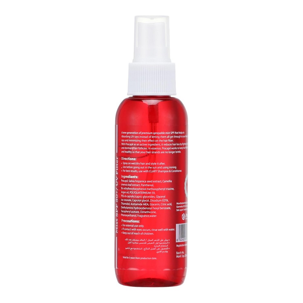 كلارى ميست 120 مل SPF50+ بخاخ الحماية من الحرارة يوفر حماية استثنائية لشعرك من التساقط والتلف الناجم عن التعرض المباشر لأشعة الشمس الضارة. هذا المنتج الفريد بمعامل وقاية من الشمس 50+ يعمل عبر فلتر UV على امتصاص وتنقية الأشعة فوق البنفسجية، مما يحمي لون شعرك المصبوغ ويقيه من تأثيرات الحرارة الناتجة عن استخدام مكواة تصفيف الشعر والمجففات. استمتع بشعر صحي وجميل مع بخاخ كلاري، المثالي لكل من يهتم بالعناية بالشعر مع حماية فعالة من أشعة الشمس.
