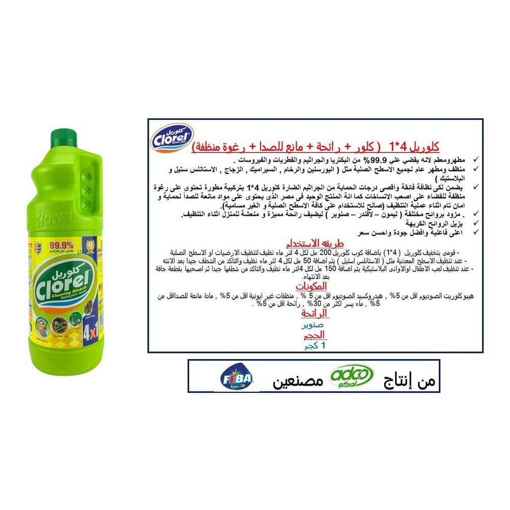 اختيار كلوريل 4*1 برائحة الليمون يعني اختيار الحل الأمثل لنظافة منزلية متكاملة، مما يساعدك على الحفاظ على بيئة نظيفة وصحية.