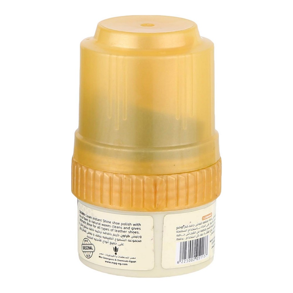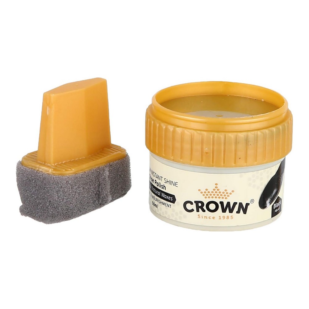 كراون ورنيش كريم أسود 50 مل كريم تلميع الأحذية المثالي من كراون، بعبوة سعة 50 مل. يُستخدم لإضفاء لمسة براقة على الأحذية. لضمان نتيجة مثالية، يُرجى إزالة أي أوساخ على الحذاء بقطعة قماش جافة. بعد ذلك، ضع طبقة رقيقة من الكريم باستخدام إسفنجة ناعمة. اترك الكريم يجف لمدة 1-2 دقيقة، ثم امسح بإحكام باستخدام قطعة قماش جافة للحصول على لمعان رائع. تأكد من إغلاق الغطاء بعد كل استخدام لتجنب الجفاف، واحفظه بعيدًا عن متناول الأطفال. مع كراون، لحذاء دائم اللمعان.