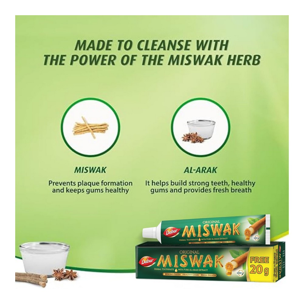 استمتع بابتسامة صحية وجذابة مع معجون أسنان دابر المسواك الذي يحتوي على خلاصة الأراك النقي. هذا المعجون العشبي، الذي يمتد عبر أكثر من 130 عامًا من الخبرة في التركيبات الطبيعية، يقدم لك منتجًا خاليًا من الفلورايد والمواد الكيميائية الضارة. احمِ أسنانك من التسوس واستمتع بنعومة النعناع المنعشة في كل استخدام. بالإضافة إلى ذلك، ستحصل على فرشاة أسنان مجانية تمامًا. اجعل صحة فمك أولوية مع معجون دابر المسواك وابتسم بثقة.