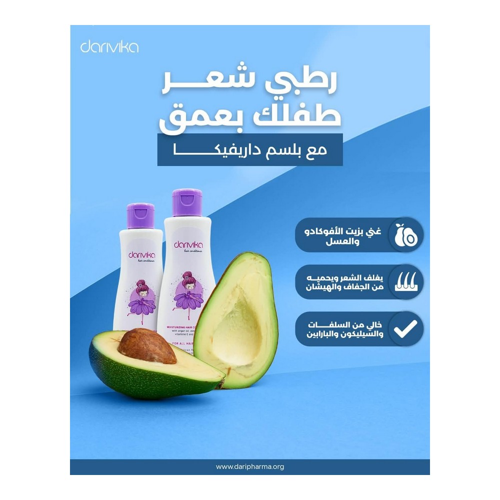 دارفيكا بلسم شعر للأطفال مصمم خصيصًا للعناية بشعر الأطفال بلطف، حيث يساعد على ترطيب الشعر وتنعيمه وفك التشابك بسهولة، كما يساهم في تسهيل التصفيف ومنح الشعر نعومة ولمعانًا صحيًا مع الاستخدام المنتظم.