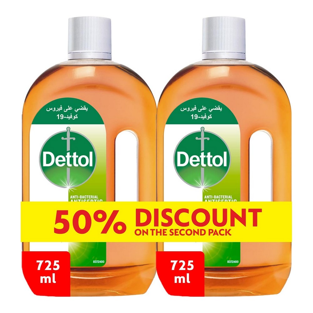 ديتول مطهر سائل 725 مل هو منتج مثالي للحفاظ على نظافة وصحة عائلتك. يضمن لك القضاء على 99.9% من الجراثيم والبكتيريا بفعالية عالية. يأتي المنتج في عبوة سعة 725 مل، مما يجعله خياراً اقتصادياً ومناسباً للاستخدام اليومي. يتميز بتركيبة قوية تساعد على تنظيف الأسطح والمناطق الحساسة بأمان، كما أنه متوفر حالياً بعرض خاص، مما يمنحك خصماً بنسبة 50% على سعره العادي. احصل على ديتول مطهر سائل لضمان بيئة صحية وآمنة لكل أفراد الأسرة.