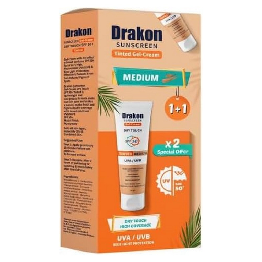 دراكون صن بلوك جل تينتيد ميديم50spf+ عرض 2 قطعة 60 جمoffer