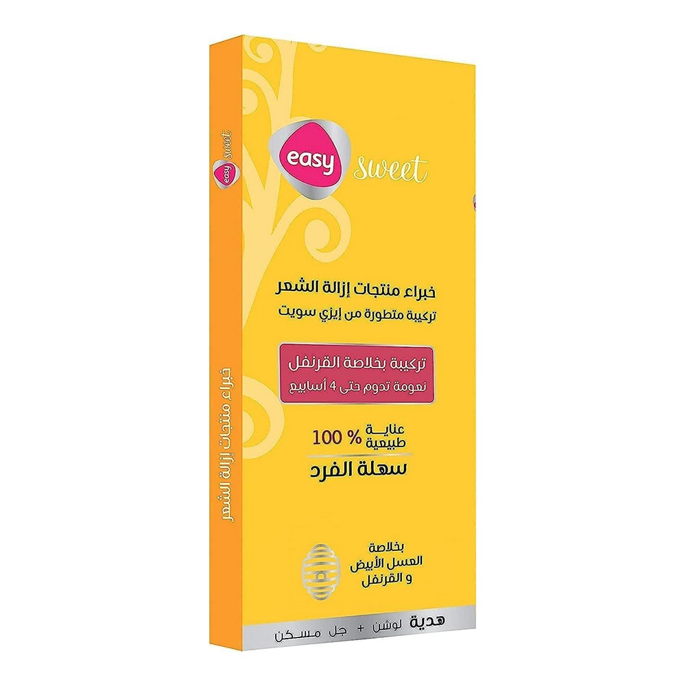ايزى سويت عجينة إزالة الشعر الطبيعية بالعسل والقرنفل 95 جرام، العلامة التجارية: سهل، مزيل شعر طبيعي 100%. هذا المنتج يحافظ على نعومة البشرة ويزيل الشعر من الجذور، مما يضمن بشرة ناعمة تدوم لمدة 4 أسابيع. التركيبة تحتوي على العسل الأبيض ومستخلص القرنفل، مما يوفر حماية إضافية للبشرة. يزيل الشعر الزائد بسهولة دون التسبب في أي إصابات أو حروق. العبوة تشمل لوشن للبشرة وجل ريغاتي لتعزيز العناية بعد إزالة الشعر. مصنوع في مصر تحت إشراف شركة سهلة الرعاية. احصل على تجربة فريدة وبشرة مطاطية لفترة طويلة.