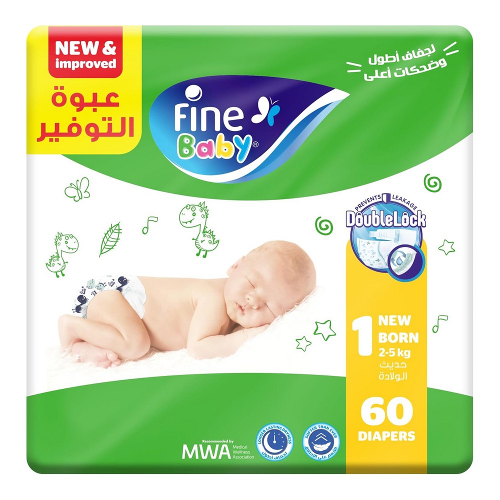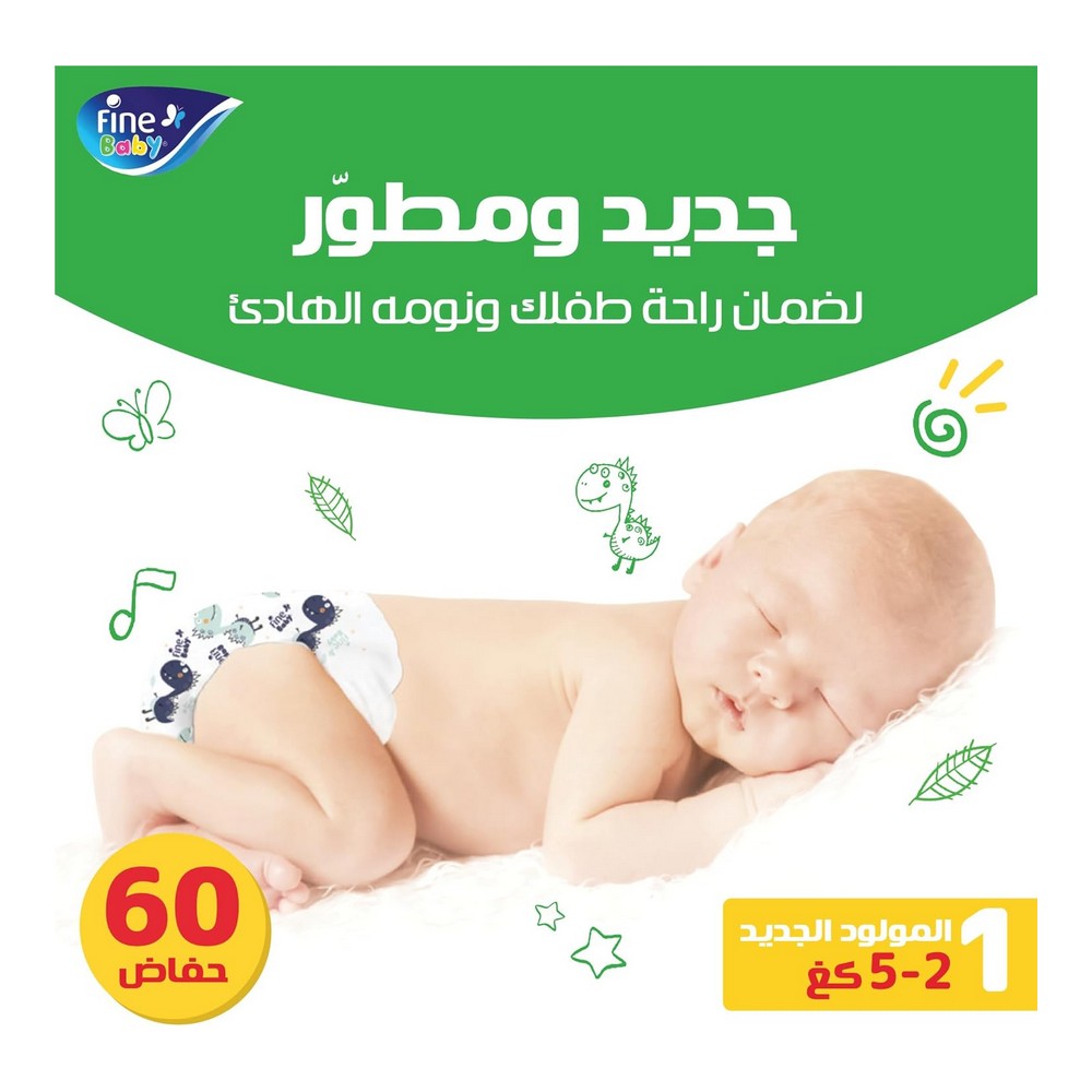 فاين بيبى حديث الولادة مقاس1 60 حفاضة @