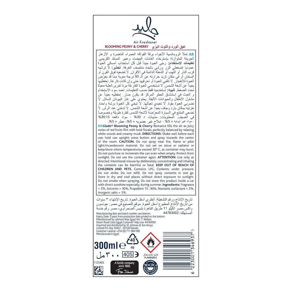 جليد سبراى معطر جو ورد و توت 300 مل|| أضف لمسة رومانسية إلى منزلك مع بخاخ معطر الغرفة برائحة الفاوانيا والكرز من جليد. استمتع بمزيج رومانسي من روائح الفواكه الحمراء الغنية مع الأزهار الجريئة، المتوازنة مع الأخشاب البيضاء المريحة والمسك الكريمي. مصممة لمحاربة الروائح الكريهة، يمكن استخدام معطرات الجو من جلايد بشكل يومي أو كلمسة نهائية بعد روتين التنظيف. يغمر بخاخ العطر هذا الهواء على الفور بالعطور المصنوعة بشغف. يتميز هذا المنتج بإزالة الروائح الكريهة وتنشيط الهواء بسرعة في الحمام والمطبخ وغرفة المعيشة وغرفة النوم. جليد، معطرات جو، روائح منعشة، تنظيف، أجواء رومانسية.