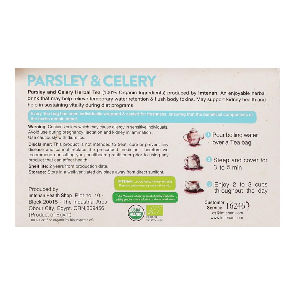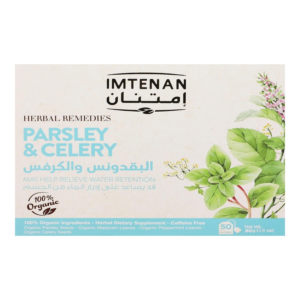 شاي البقدونس والكرفس من امتنان هو مزيج عشبي طبيعي يجمع بين فوائد نباتي البقدونس والكرفس المعروفين بدورهما في دعم الصحة العامة والمساعدة في التخلص من احتباس السوائل في الجسم. تركيبة فريدة مناسبة للاستخدام اليومي ضمن نمط حياة صحي.