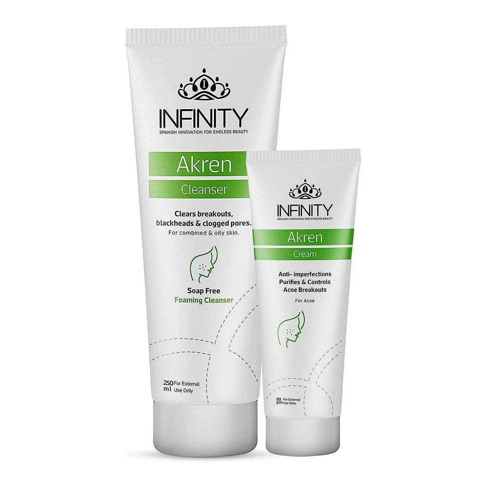 منتج انفينتى اكرين يجمع بين غسول الوجه بحجم 250 مل وجل كريم بحجم 60 مل في عرض مميز، إذ يقدم لك عناية متكاملة لبشرتك.