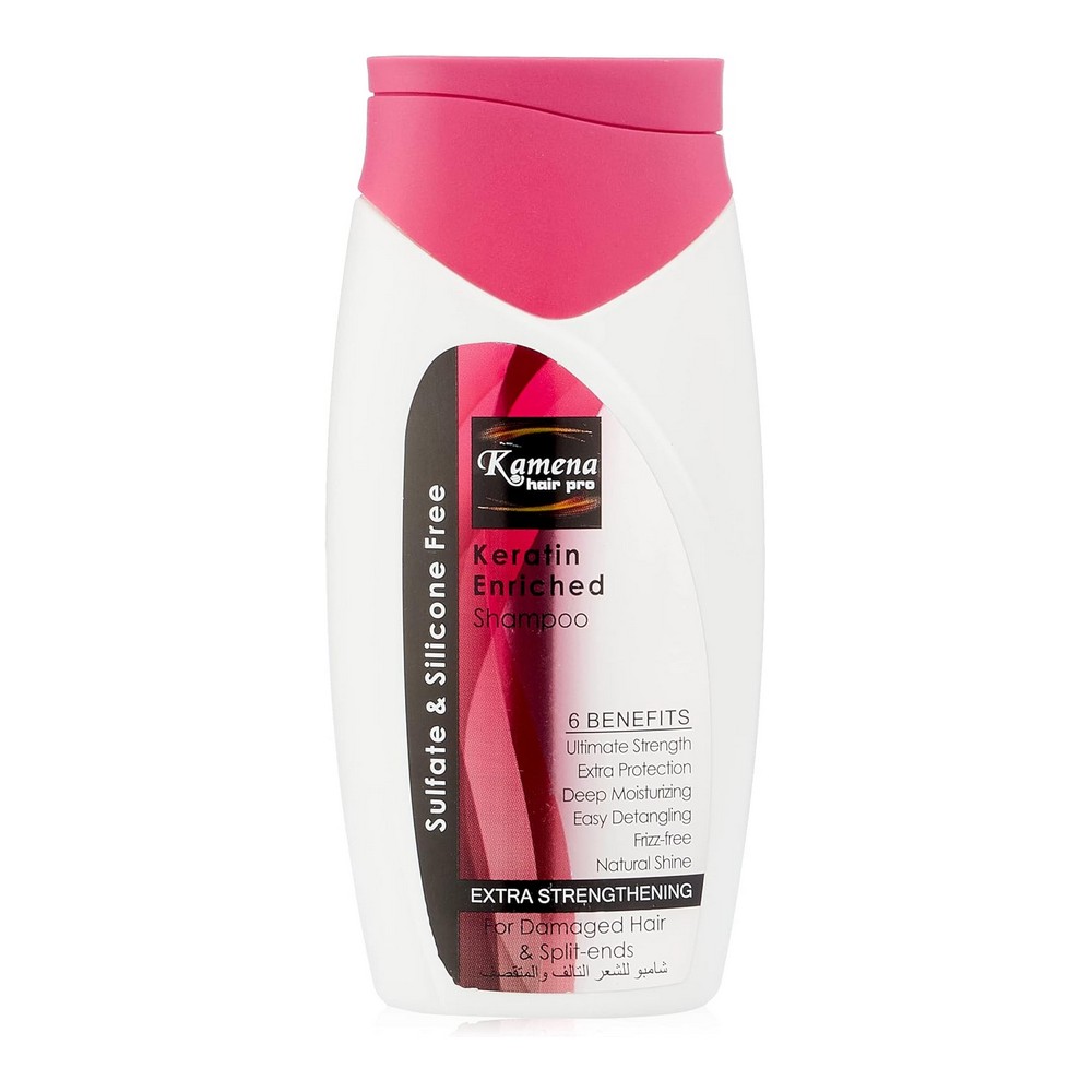 شامبو مغذي يحتوي على مكونات كيراتين فعالة لتقوية الشعر واستعادة حيويته. يأتي بحجم 250 مل ويتميز بتركيبته الخالية من الكبريتات والسيليكون. يوفر شامبو كامينا ستة فوائد رائعة تشمل القوة القصوى، حماية إضافية، ترطيب عميق، سهولة في إزالة التشابك، خلوه من التجعد، ولمعان طبيعي يدوم طويلاً. هذا المنتج مصمم خصيصاً للشعر التالف والأطراف المتقصفة، مما يجعله مناسباً لكلا الجنسين، الرجال والنساء على حد سواء. احصل على شعر صحي وقوي مع كامينا هير برو.