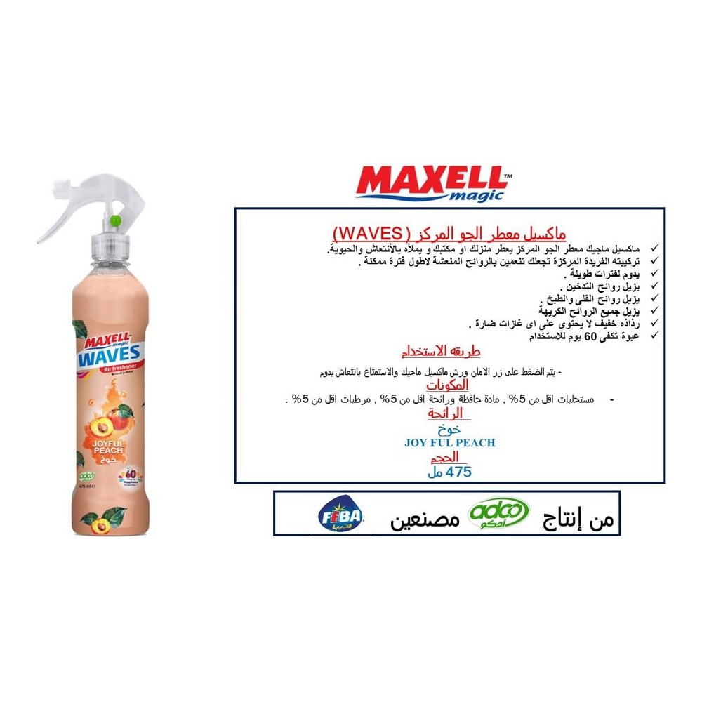 معطر جو من ماكسيل ماجيك برائحة خوخ منعشة، حجم 475 مل ممتاز لتوفير جو ممتع ومنعش في أي مساحة. يحافظ على الانتعاش في المنزل أو المكتب ويساعد على إزالة الروائح غير المرغوب فيها بشكل فعال. مثالي للاستخدام اليومي، فهو يضيف لمسة من الفخامة إلى الأجواء. استمتع بتجربة رائحة خوخ طبيعية تدوم طويلاً.