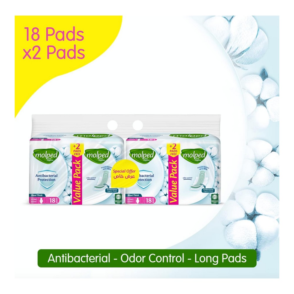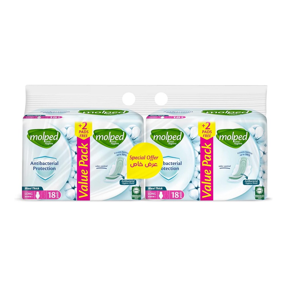 مولبيد مضاد للبكتريا طويل 18 فوطة + 2 فوطة مجانا عرض 2 قطعة offer##
