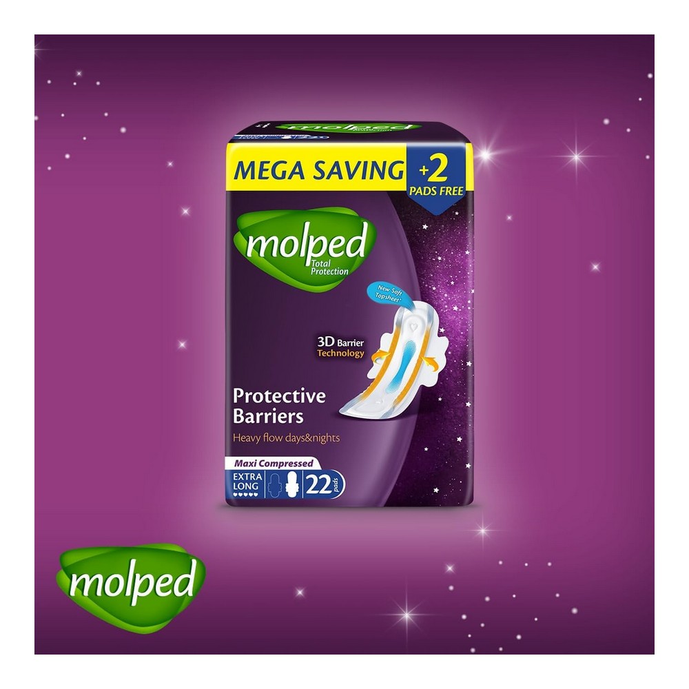 مولبيد حماية متكاملة طويل جدا 22 فوطة فوط صحية متطورة تقدم حماية شاملة وراحة فائقة بفضل تصميمها الطويل للغاية. Ideal للنساء الباحثات عن الأمان والثقة خلال فترات الدورة الشهرية. هذه العبوة الاقتصادية تحتوي على 22 فوطة صحية تضمن لك حماية مثالية وتمتص السوائل بفاعلية مع أقصى درجات الراحة. تتميز بتقنية مضادة للبكتيريا، مما يوفر لك أمانًا إضافيًا. امنحي نفسك الثقة مع مولبيد – الخيار المثالي للحماية اليومية.