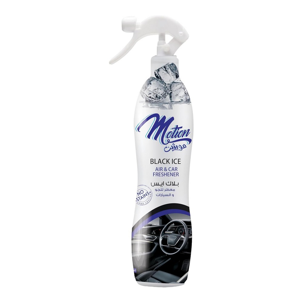 موشن معطر جو بخاخ بلاك ايس 400 مل - يتميز معطر الهواء موشن برائحته الفريدة والمنعشة، مصمم بفعالية لتنظيف الهواء ومنح السيارة أجواء مريحة. سعة 400 مل تمنحك استمرارية طويلة، مثالي للاستخدام اليومي في المنزل أو السيارة. احصل على تجربة هواء منعش وجذاب مع موشن معطر هواء بلاك ايس.