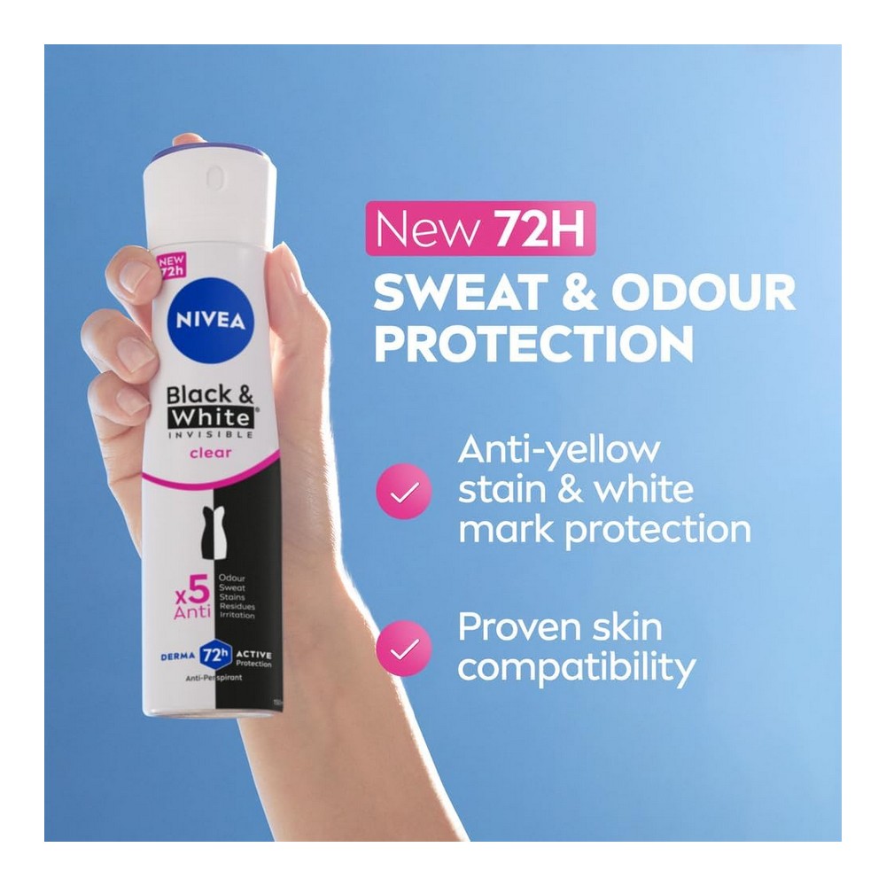 نيفيا سبراى انفيزيبل اورجينال حريمى 150مل || مزيل العرق بلاك اند وايت اوريجينال غير مرئي للنساء من نيفيا هو الحل المثالي لمشكلة البقع البيضاء والصفراء على الملابس. تركيبة فريدة ومبتكرة تضمن حماية ملابسك، حيث يبقى الأسود أسود والأبيض أبيض لفترة أطول. مع حماية موثوقة تدوم لمدة 48 ساعة، هذا المضاد للتعرق يمنحك رائحة منعشة تدوم طويلاً، مما يحافظ على بشرتك نظيفة ومنتعشة. استمتعي بتجربة العناية المثلى مع نيفيا. نوفر لك مجموعة متنوعة من منتجات العناية بالبشرة، مثل الصابون وجل الاستحمام ومزيلات العرق واللوشن، لتلبية جميع احتياجات النظافة الشخصية. نيفيا تقدم الجودة والفعالية لأكثر من مئة عام للاستمتاع بحياة صحية ومتألقة. اكتشفي الآن المنتج المثالي لكِ ولأولوياتك مع نيفيا.
