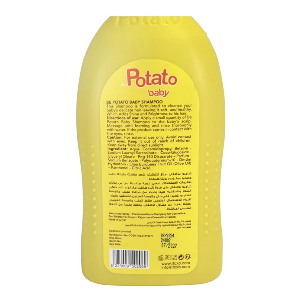 بوتاتو شامبو أطفال بالموز 400 مل || شامبو أطفال غني بالتركيبة الطبيعية مع نكهة الموز، يُغذي ويقوي الشعر بينما يعتني بفروة الرأس. مصنوع خصيصاً للأطفال، يمتاز بأنه خالٍ من البارابين والفثالات والكبريتات، مما يجعله آمناً وفعالاً. تركيبة خفيفة لا تسبب تمزق العيون، وتساعد على تنعيم الشعر وتحسين لمعانه. شامبو تنظيف لطيف برائحة الفواكه ليمنح شعر طفلك لمسة طبيعية ومشرقة.
