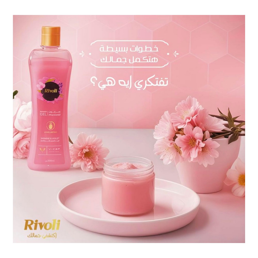 ريفولى شاور جل الياسمين والبنفسج (وردى) 3.3 لتر: جل استحمام فاخر برائحة الورد، يمنحك تجربة استحمام مميزة، يترك بشرتك ناعمة ورائحة رائعة تدوم طويلاً. مصمم بعناية ليعزز من شعور الانتعاش والراحة، كما يضمن لك التغذية اللازمة لبشرتك. تابع للحفاظ على بشرتك ومظهرها الجذاب يوميًا مع جل استحمام ريفولي عبوة 3 لتر.