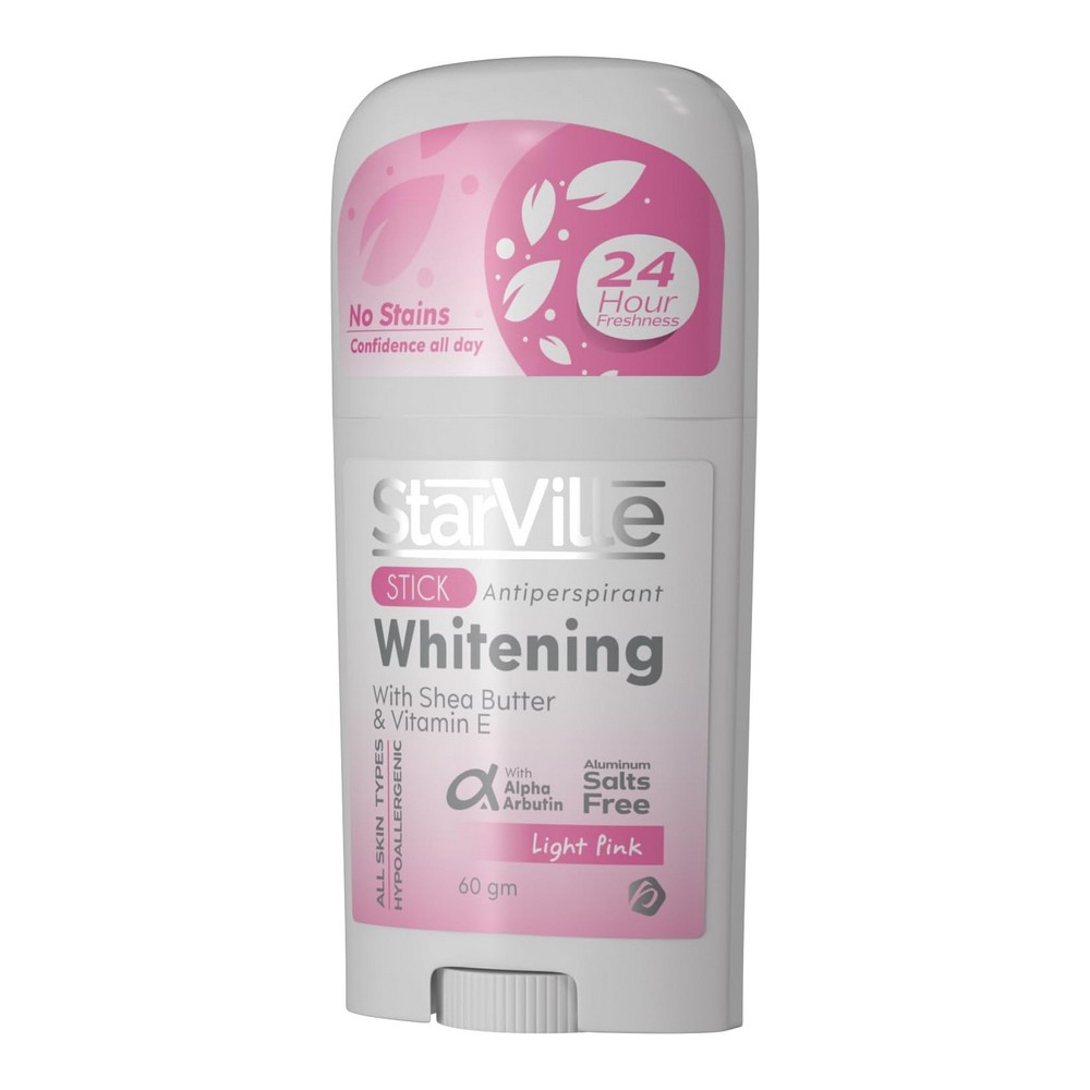 ستار فيل استيك لايت بينك 60 جم || يعكس القوة الفائقة في الحماية من العرق طوال اليوم بفضل المكون الفعّال "سينسيدين بيور" الذي يقاوم البكتيريا المسؤولة عن الروائح الكريهة بشكل سريع وفعّال. يضم تركيبة متقدمة تشمل مكونات مضادة للبكتيريا مثل البيروكتون أولامين وإيثيهيكسيل جليسرين لتعزيز فعالية الحماية ضد العرق. كما أنه يساعد على تفتيح البشرة الداكنة ويمنحك إشراقة متوازنة لأنه يحتوي على 4 مكونات نشطة مثل ألفا أربوتين وفيتامين سي وحمض الكوجيك ومستخلص عرق السوس، مما يجعله مثاليًا للبشرة الحساسة.
