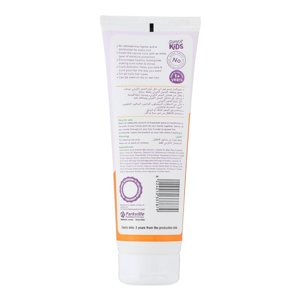 سوبر كيدز ليف ان كونديشنر 250 مل بلسم ليف ان ومنشط تجعيدات الشعر الكيرلي من سوبر كيدز هو الخيار الأمثل للحفاظ على صحة ولمعان الشعر مع توفير تحديد مميز للخصلات. يوفر هذا البلسم الحماية المثلى من هيشان الشعر ويرطب الخصلات لتحميها من فقدان الرطوبة. يعمل على تعزيز شعر صحي ويجعل التجعيدات أكثر نعومة ولمعانًا. يتوفر بخاصية تنسيق وتجعيد الشعر كما ترغب. خالي من الكبريتات والسيليكون والجلوتين والبارابين والزيوت المعدنية والفازلين. طريقة الاستخدام بسيطة، فقط ضع كمية مناسبة في راحة اليد وافرك بلطف ثم مررها في الشعر للحصول على أفضل النتائج. يمكن استخدامه على الشعر الجاف والرطب، ومناسب لجميع أنواع الشعر المجعد من عمر سنة. يحتوي على مكونات طبيعية مثل الجليسرين الذي يسحب الرطوبة ويحافظ عليها، وبرو فيتامين بي 5 الذي يضيف نعومة ولمعان دون الزيوت الثقيلة. زيت الجوجوبا وزيت الجزر وجوز الهند ترطب الشعر وتقلل التجاعيد وتحسن من هيكله، في حين أن زيت الأفوكادو غني بالدهون والمعادن الضرورية لصحة الشعر. بروتين الكيراتين، الذي يشكل 95% من مكونات الشعر، يضيف اللمعان والنعومة. شمع العسل يعمل على ترطيب الشعر وتنعيم الخصلات المتطايرة ويحفظ تسريحات الشعر. يمكن للصبار أن يغذي الشعر ويعمل كجل تصفيف فعال، بينما يساهم فيتامين E في تعزيز نمو الشعر. يعزز العسل من البريق واللمعان للشعر الجاف أو المجعد.