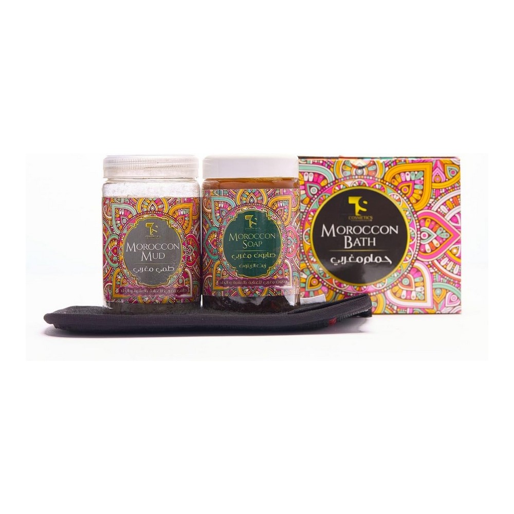 اسم المنتج: مجموعة الحمام المغربي (صابون مغربي + طين مغربي + لوفة مغربية) توصيف المنتج: استمتع بأفضل تجربة للعناية الشخصية مع مجموعة الحمام المغربي المميزة من علامة تي اس كوزماتيكس. تحتوي هذه المجموعة على صابون مغربي طبيعي، مُصنع بعناية من مكونات مغربية فريدة، ليمنح بشرتك النعومة والإشراقة. تم تصميم الليفة المغربية خصيصًا لتقشير البشرة وإزالة الخلايا الميتة، مما يساعد على تحسين ملمس البشرة ومنحها لمسة ناعمة ومشرقة. أما الطين المغربي، المستخلص من جبال أطلس، فهو مثالي لتنظيف الجسم وتنقيته بشكل فعال، حيث يحتوي على أملاح معدنية أساسية مثل الكالسيوم والمغنيسيوم. استخدم الطين المغربي ضمن روتين العناية بالبشرة لتجربة تجديد فريدة، ويلبي جميع احتياجاتك للعناية بالجسم. مجموعة الحمام المغربي هي خيارك الأمثل للحصول على بشرة صحية ونضرة.