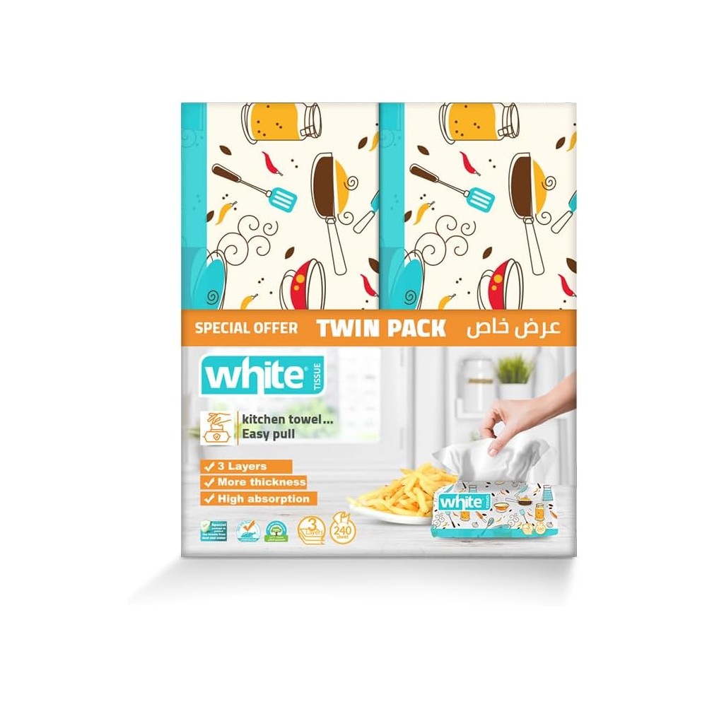 اكتشفوا وايت مناديل المطبخ المعقمة، الحل المثالي للحفاظ على نظافة مطبخكم وصحتكم. يأتي هذا العرض المميز بعبوتين تحتوي كل منهما على 240 منديل، مما يوفر لكم راحة استخدام طويلة الأمد. تتميز هذه المناشف بقدرتها العالية على الامتصاص والتنظيف، مما يجعلها مثالية لمسح الأسطح، تحضير الطعام، واستعمالات متعددة في المنزل. مصنوعة من مواد آمنة ومعقمة، تضمن لكم تجربة استخدام صحية وفعالة. احصلوا على عرض 2 قطعة اليوم واعتنوا بمطبخكم بأفضل الطرق الممكنة.