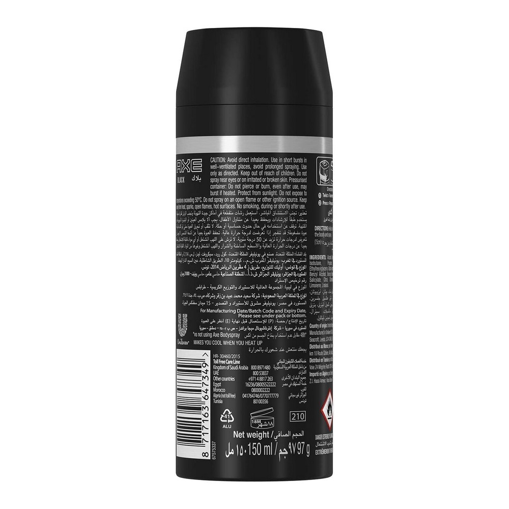 اكس سبراى بلاك رجالى 150 مل مزيل عرق وبخاخ للجسم مع انتعاش يدوم لمدة 48 ساعة. يتميز برائحته الفريدة التي تمنحك شعوراً بالانتعاش طوال اليوم. قم بهز الغطاء وقلبه ورشه مباشرة على الإبطين والجسم للحصول على أفضل النتائج. مثالي للاستخدام اليومي، يوفر حماية مثلى ضد الروائح الكريهة. احصل على انتعاش يدوم طويلاً مع اكس سبراى بلاك.
