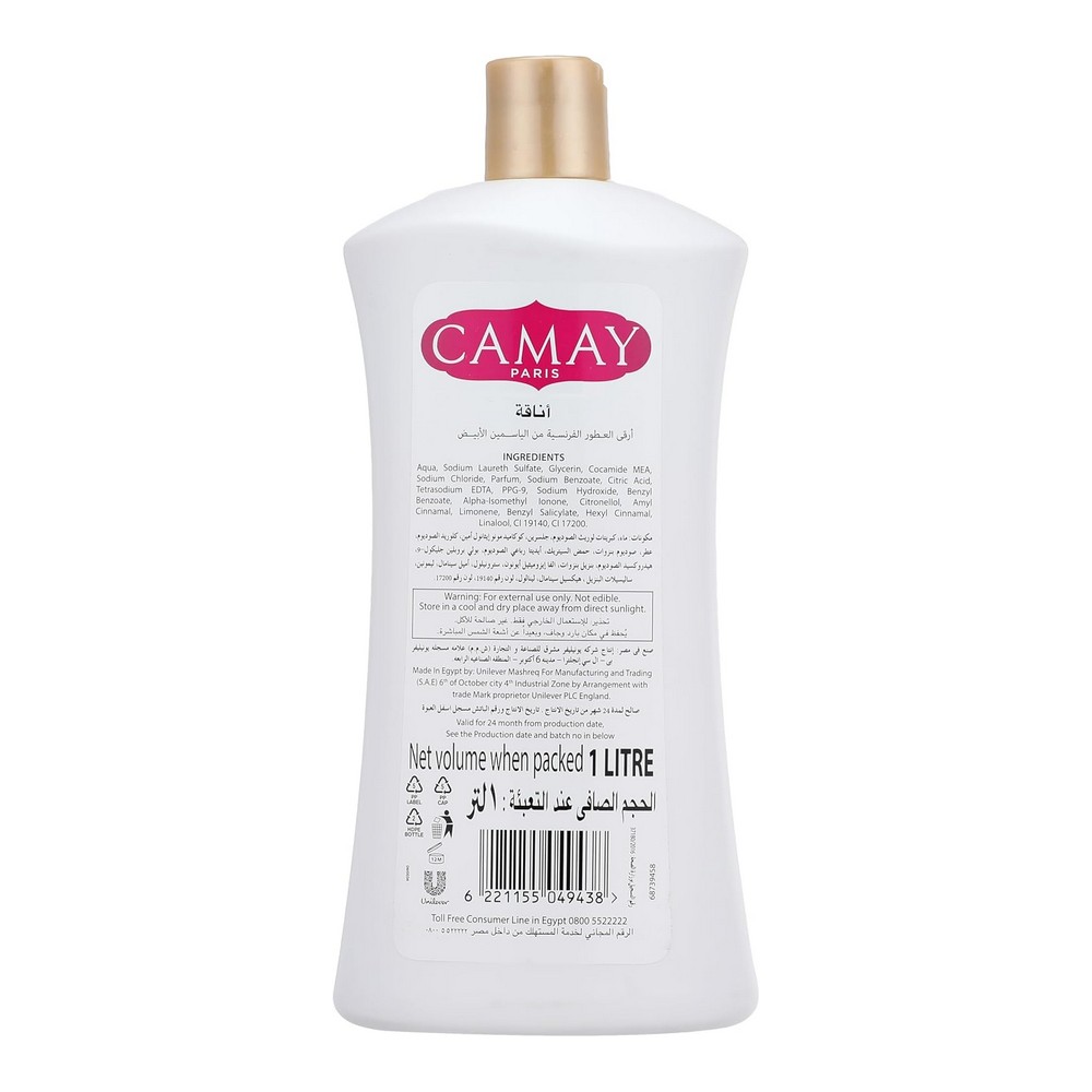 كامى شاور جل اناقة 1 لتر - جل استحمام للجسم من كاماي يوفر تجربة استحمام مميزة بفضل تركيبته الفريدة. يعزز الجل نعومة البشرة ويمنحها شعوراً بالانتعاش. يحتوي على رائحة الياسمين الأبيض الجذابة التي تضفي لمسة من الأناقة على كل استحمام. حجم 1 لتر مثالي للاستخدام اليومي، مما يجعله خيارًا ممتازًا لكل من يبحث عن جودة وفعالية في منتجات العناية بالبشرة. احصل على لمسة من الفخامة في روتينك اليومي مع جل الاستحمام كامى.
