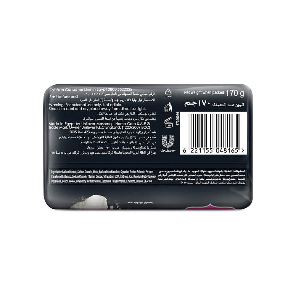 كامى صابون اناقة اسود 175 جم | صابون فاخر للوجه والجسم من علامة كاماي، يقدم لكِ تجربة فريدة من نوعها مع رائحة زهور منعشة. يأتي بحجم مُناسب 170 غرام، بشكل صلب يدوم طويلاً. مثالي لتنظيف البشرة بعمق وترطيبها، مناسب لجميع أنواع البشرة، يعزز من إشراقتك وبشرتك النضرة. احصلي على لمسة من الأناقة اليومية مع هذا الصابون المميز.