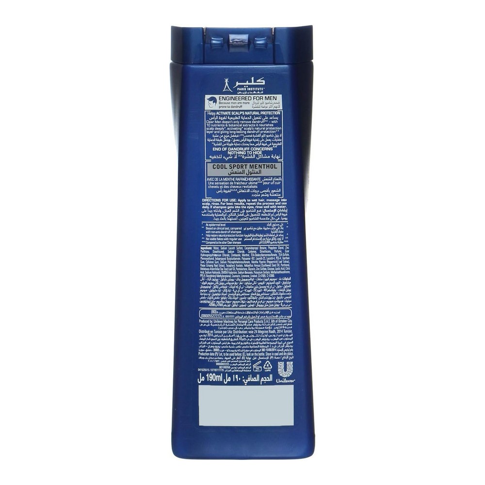 كلير شامبو منتول منعش رجاليو180مل - يتميز بتأثير منعش قوي ومركز يناسب جميع الأجناس. يوفر انتعاشاً طويلاً لفروة الرأس، مما يعزز صحتها وقوتها. يمنح الحماية الدائمة ضد القشرة، حيث يعالجها من الجذور ويضمن شعراً صحياً ولامعاً. للاستخدام، يُوصى بوضعه على الشعر المبلل، وتدليك فروة الرأس بلطف، ثم الشطف. للحصول على أفضل النتائج، يُفضل استخدامه يومياً.