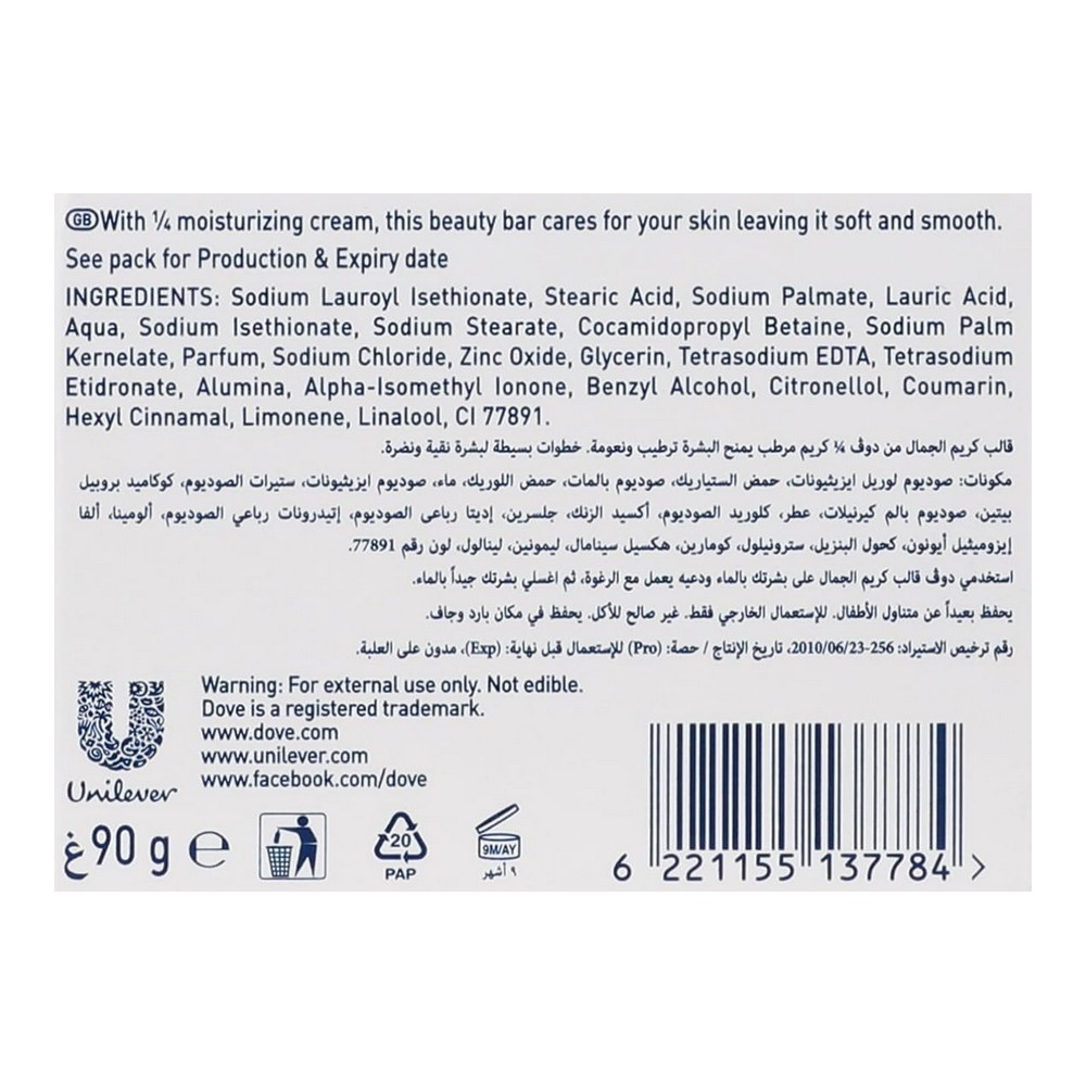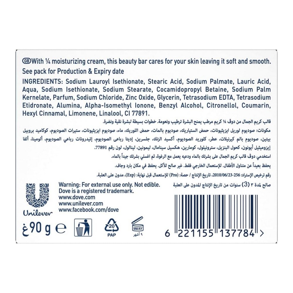 دوف صابون ابيض 90 جم || يجمع قالب صابون بيوتي كريم من دوف بين تركيبة تنظيف لطيفة غنية بالزيوت الطبيعية وكريم ترطيب مميز بنسبة الربع. هذا الصابون المصنوع بمهارة يمنحك بشرة أكثر نعومة وسلاسة وإشراقاً، مما يجعله الخيار المثالي لمستحضرات العناية بالبشرة. استمتع بإحساس الرفاهية كل يوم مع دوف، وامنح بشرتك العناية التي تستحقها.