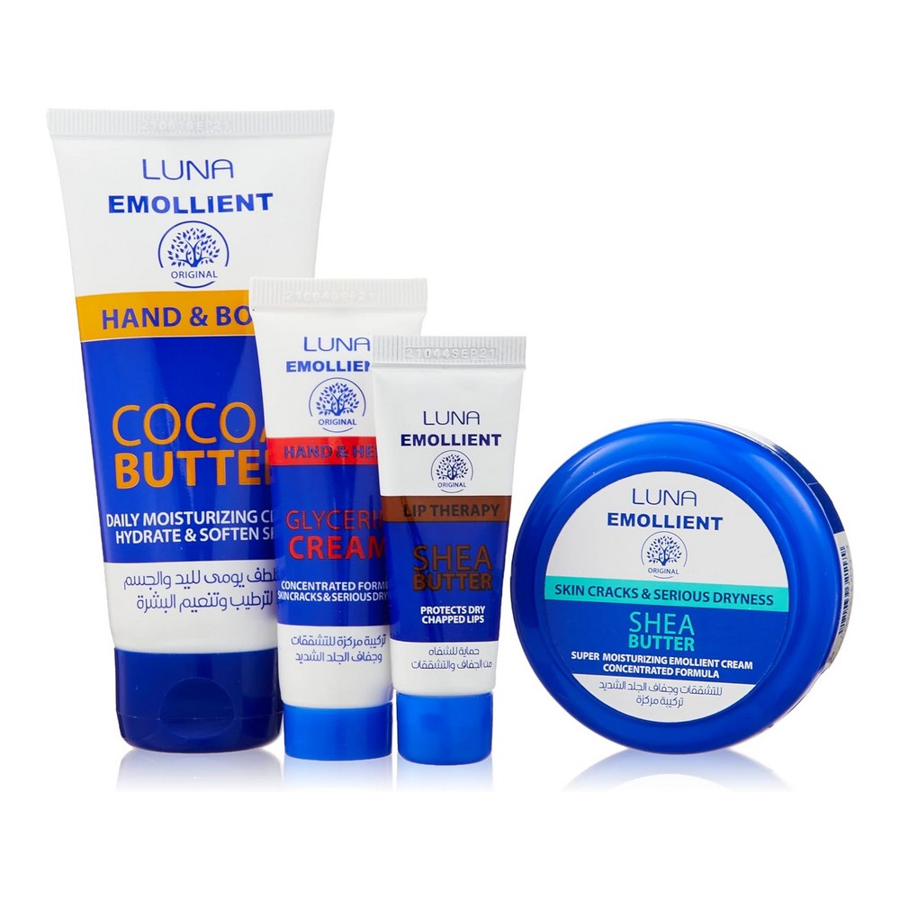لونا شنطة تشققات 4 قطعة عرض كريم كعب مرطب بزبدة الشيا - 60 جرام يعالج التشققات والجفاف الشديد للقدمين واليدين. تركيبة قوية ومناسبة لجميع أجزاء الجسم المتأثرة بالجفاف، مما يساعد على تجديد خلايا البشرة. كريم مخصص لليدين والكعب - 20 جرام، غني بتركيبات فعالة لتجديد خلايا البشرة وترطيب عميق، مما يجعله مثالياً لمناطق الجفاف مثل المرفقين والركبتين. بالإضافة إلى ذلك، يأتي المنتج مع كريم مرطب بفيتامين E لليدين والجسم - 75 جرام، مصمم خصيصًا لتلبية احتياجات ترطيب البشرة الجافة. أخيرًا، كريم مرطب للشفاه - 10 جرام، يحمي الشفاه من الجفاف والتشقق في أصعب الظروف المناخية. منتجات متكاملة للعناية الشخصية التي تعيد لبشرتك حيويتها ونعومتها، مثالية لكل من يعاني من مشاكل الجفاف.