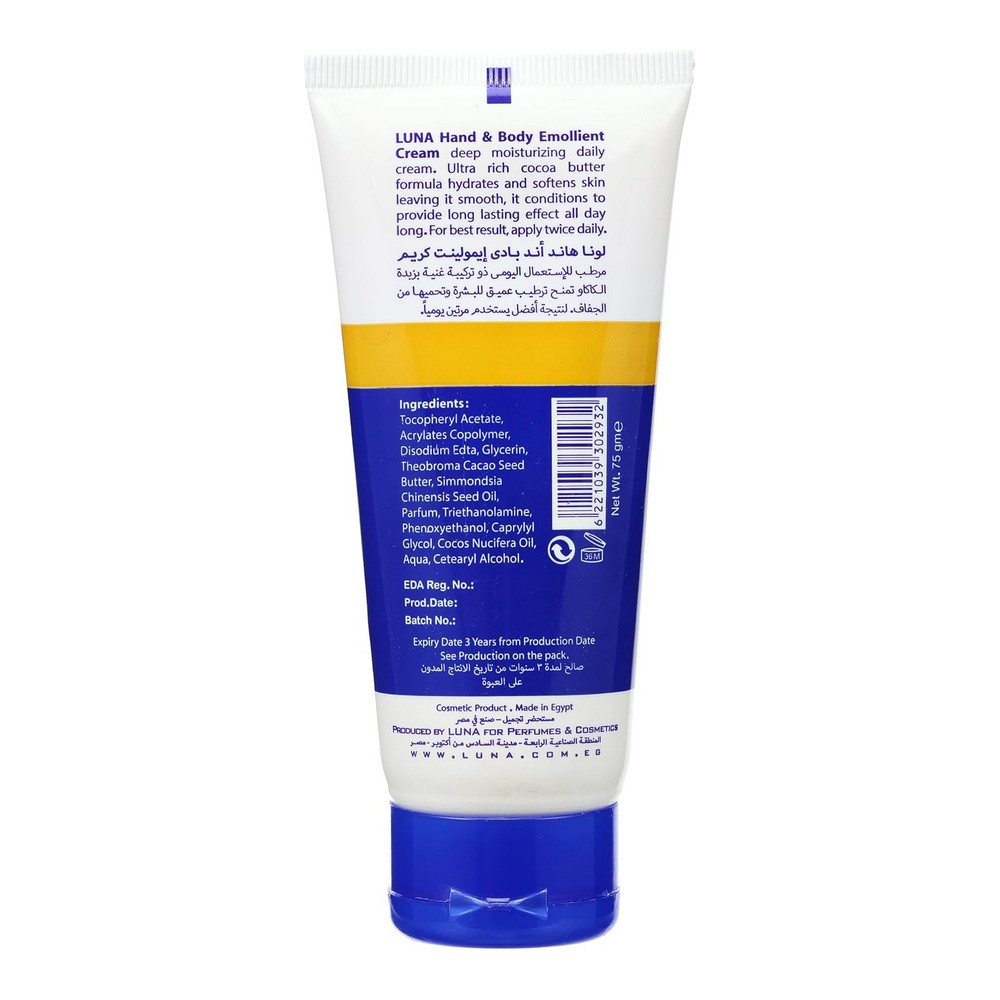 لونا ايمولينت كريم ملطف للجسم انبوبة 75 جم; تركيبة فريدة من نوعها تغني بشرتك بالترطيب وتعيد لها شبابها. يعتبر هذا الكريم المثالي لليدين والكعب، حيث يساعد في تجديد خلايا البشرة بصورة فعالة. مناسب تماما لقدميك ويديك ومرفقيك وركبتيك، فهو يستهدف المناطق المعرضة للجفاف ويعمل على ترطيبها بعمق. غني بفيتامين E الذي يعزز نعومة البشرة وحيويتها، مما يجعله خيارًا ممتازًا للحفاظ على نضارة البشرة ومظهرها الصحي. كريم لونا الملطف هو الحل الأمثل لكافة مشاكل الجفاف، لتتمتعي ببشرة ناعمة ومشرقة.