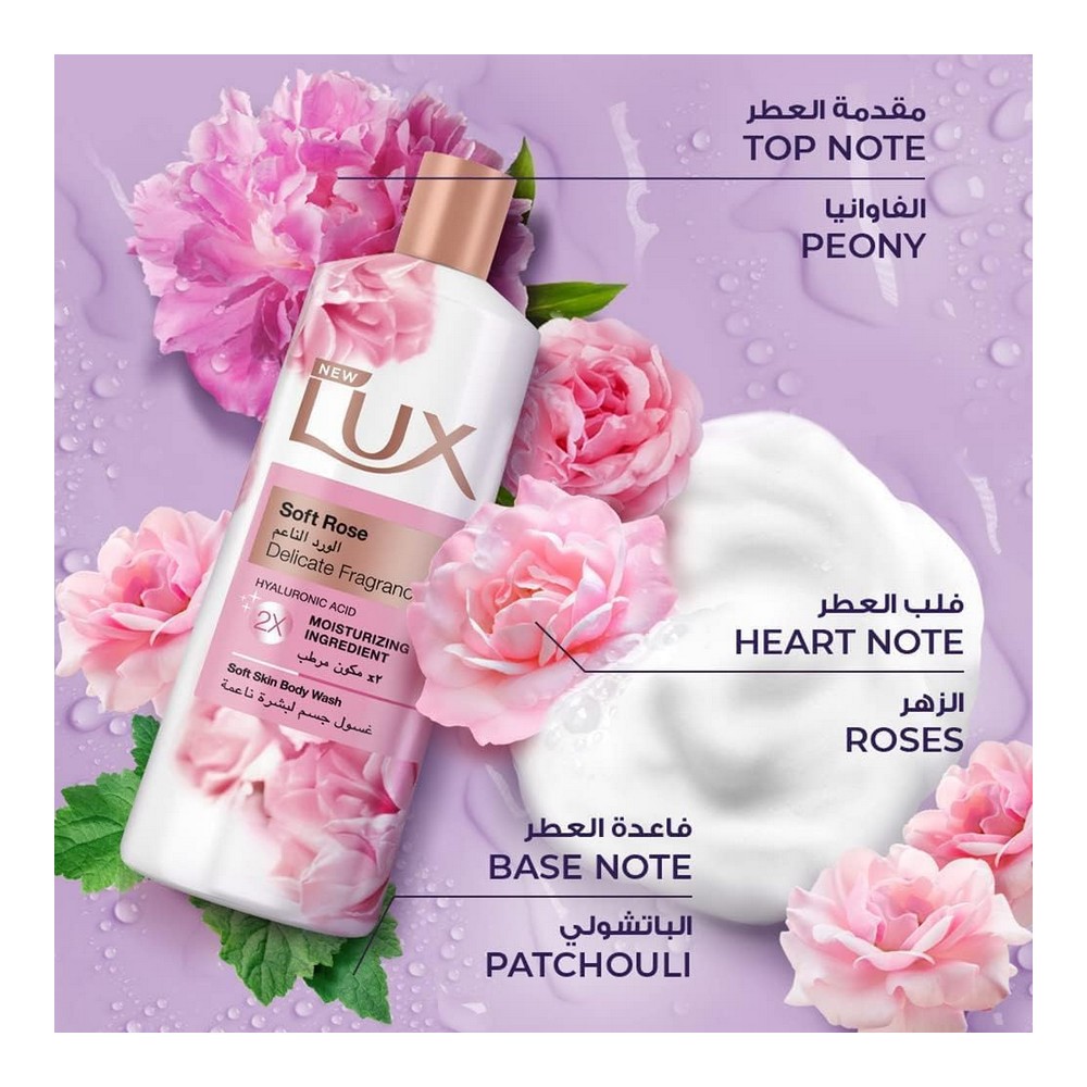 لوكس شاور جل لمسة ناعمة 500 مل خصم 15 % || العلامة التجارية: لوكس || النوع: غسول للجسم || الحجم: 500 مل || الملمس: كريمي || الرائحة: فروتفول || الروائح الأولية: البرغموت والفواكه الحمراء || الروائح الوسطى: الورد، الأزهار البيضاء، البنفسج || الروائح القاعدية: المسك والعنبر والفانيليا || انغمس في تجربة استحمام فريدة مع غسول الجسم لوكس سوفت تاتش، المحتوي على خلاصة الحرير المرطبة والورود الفرنسية. استمتع ببشرة ناعمة وعطرة بشكل يدوم طويلاً. احصل على لمسة من الفخامة كل يوم مع هذا الغسول المثالي، ودلل حواسك برائحة مميزة تجمع بين الفواكه والأزهار.