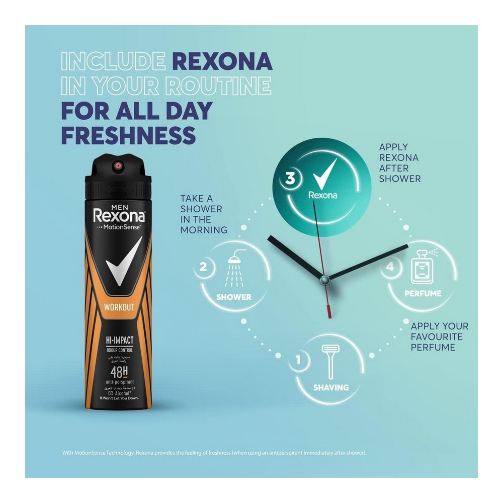 ريكسونا سبراى ورك اوت رجالى 150 مل || ريكسونا، العلامة التجارية الرائدة في مجال العناية الشخصية، تقدم لك سبراى ورك اوت المميز. بتقنية موشن سينس الحصرية، يحافظ هذا السبراى على جفافك ويمنحك شعورًا بالانتعاش أثناء الحركة والنشاط. توفر لك الصيغة الفعالة حماية تدوم لمدة 48 ساعة ضد العرق والروائح الكريهة، حتى في أصعب الظروف. خالٍ من الكحول لضمان العناية ببشرتك، مثالي للاستخدام اليومي بعد التمرين أو خلال الأنشطة المختلفة. احصل على حماية تدوم طويلاً مع ريكسونا!