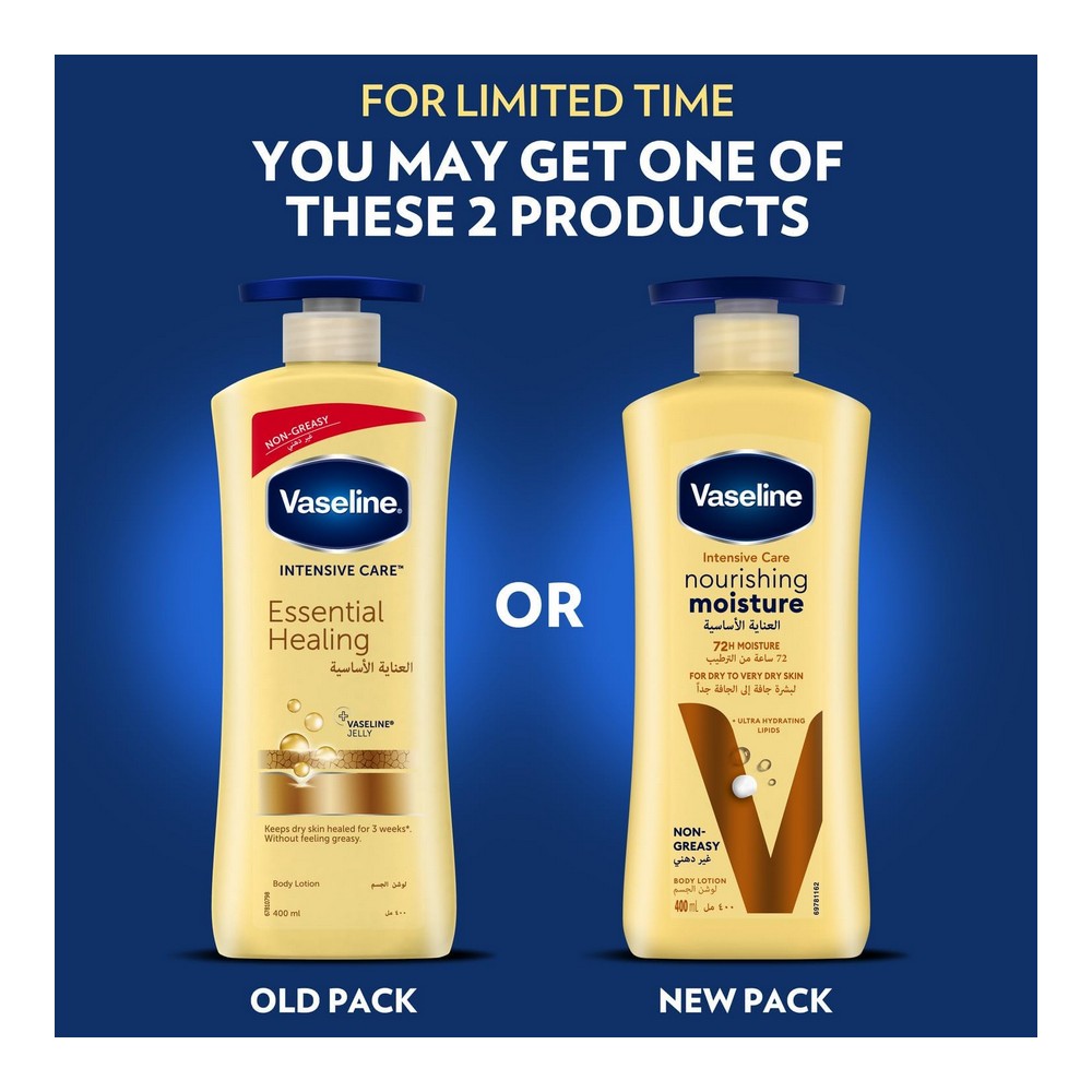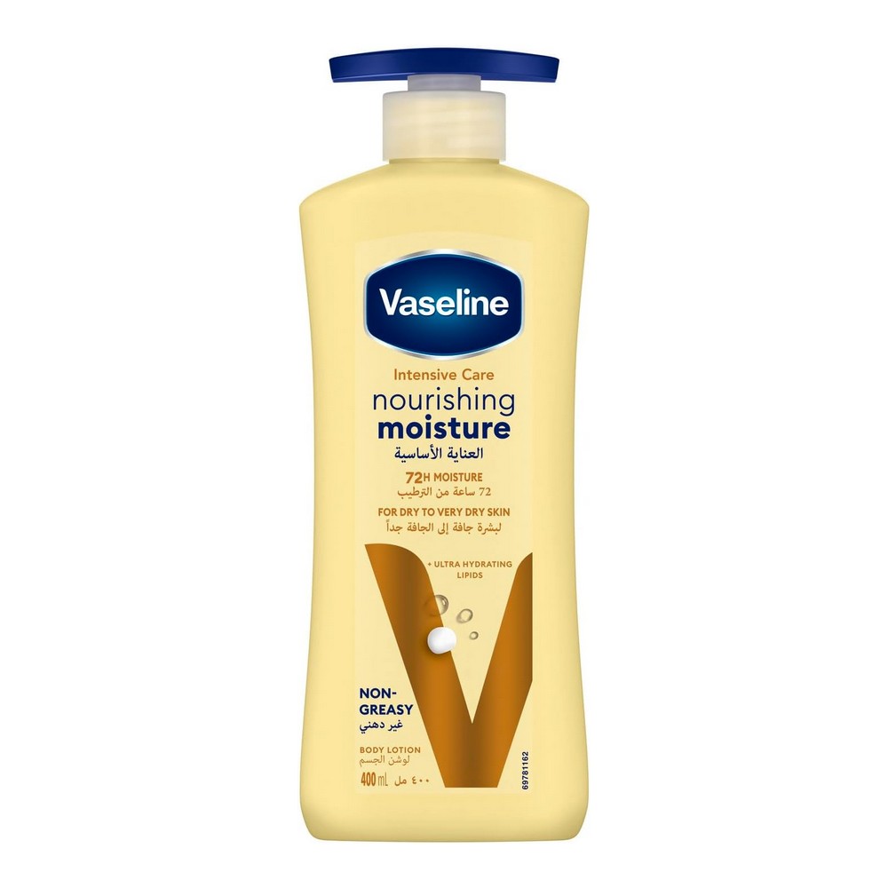 فازلين لوشن العناية الأساسية 400 مل بخاخ - خصم 15% هذا اللوشن المميز يأتي بتركيبة معالجة غنية من فازلين، مصمم لترطيب وتغذية البشرة بعمق. مثالي للاستخدام اليومي للحفاظ على نعومة وإشراقة الجلد. احصل على ترطيب مثالي مع فازلين لوشن العناية الأساسية، الآن بسعر مخفض.