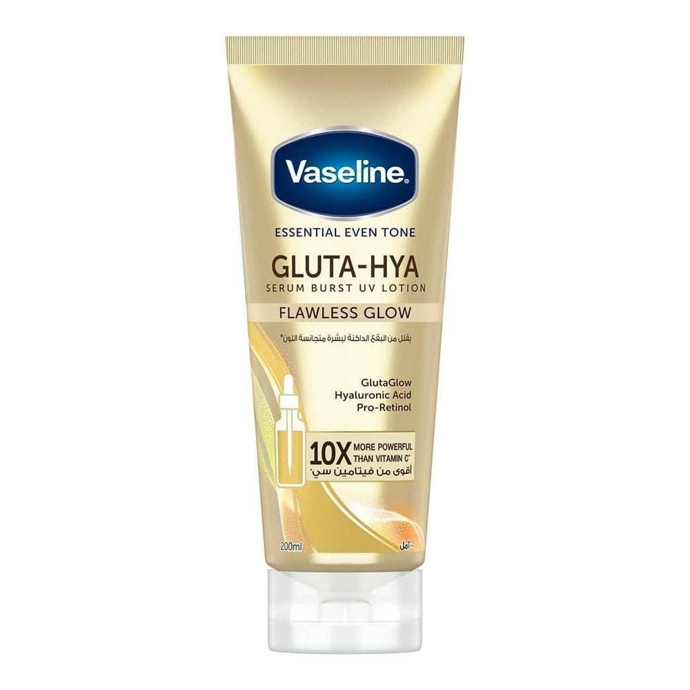 هل تعاني بشرتك من البهتان والجفاف؟ استمتعي بتوهج صحّي مع جلوتا-هيا، أول لوشن للجسم من فازلين، الذي يحتوي على تركيبة فريدة أقوى بعشر مرات من فيتامين سي، مما يعمل على تفتيح وتنعيم بشرتك. يحتوي على جلوتاجلو وحمض الهيالورونيك والريتينول برو لتغذية عميقة وترطيب طويل الأمد. ستشعرين بالفرق منذ الاستخدام الأول بفضل تقنية جلوتاجلو التي تقاوم الجفاف وتفتح لون البشرة. تركيبة خفيفة وسريعة الامتصاص وغير دهنية توفر ترطيباً وانتعاشاً ملحوظاً.